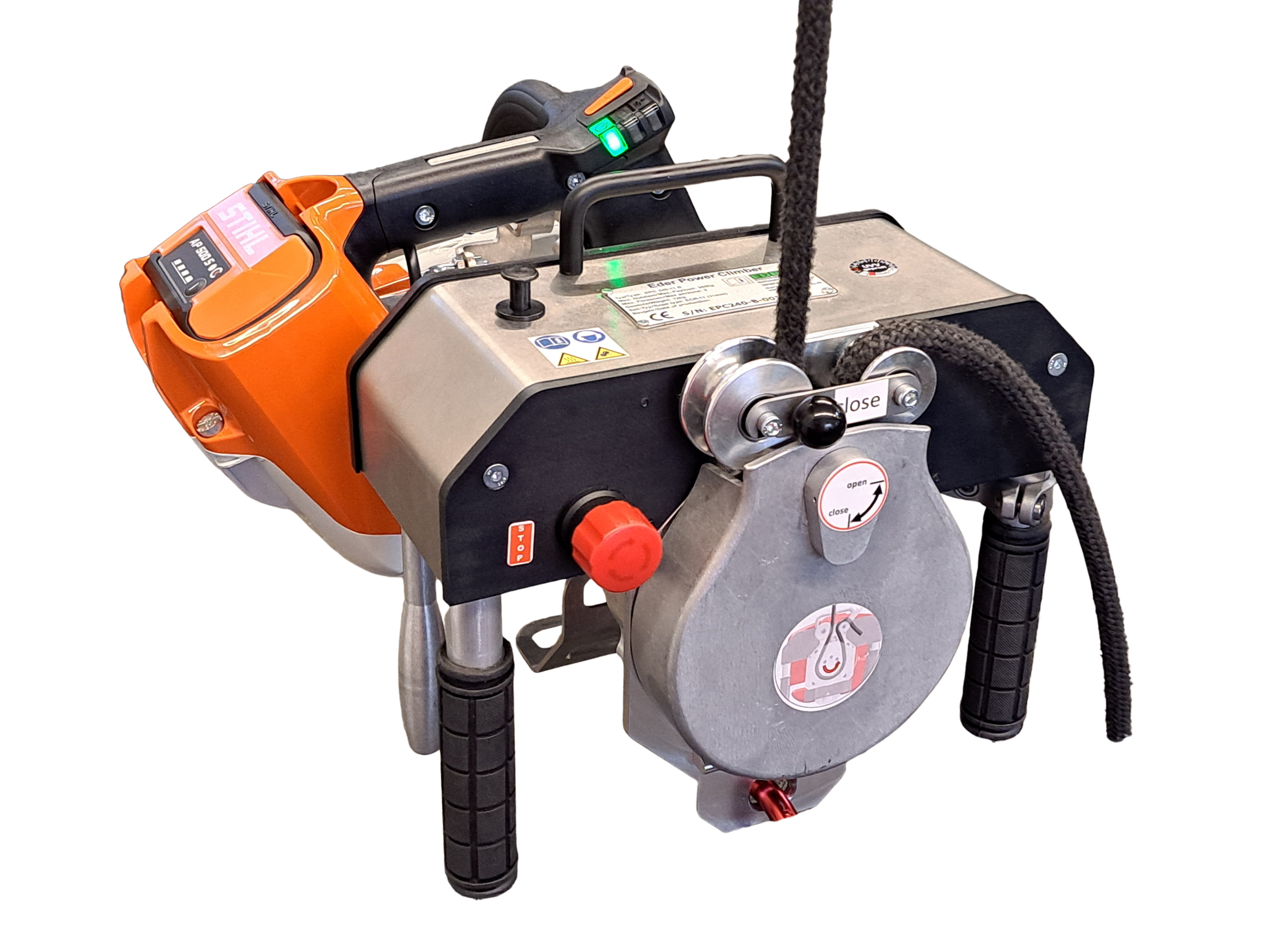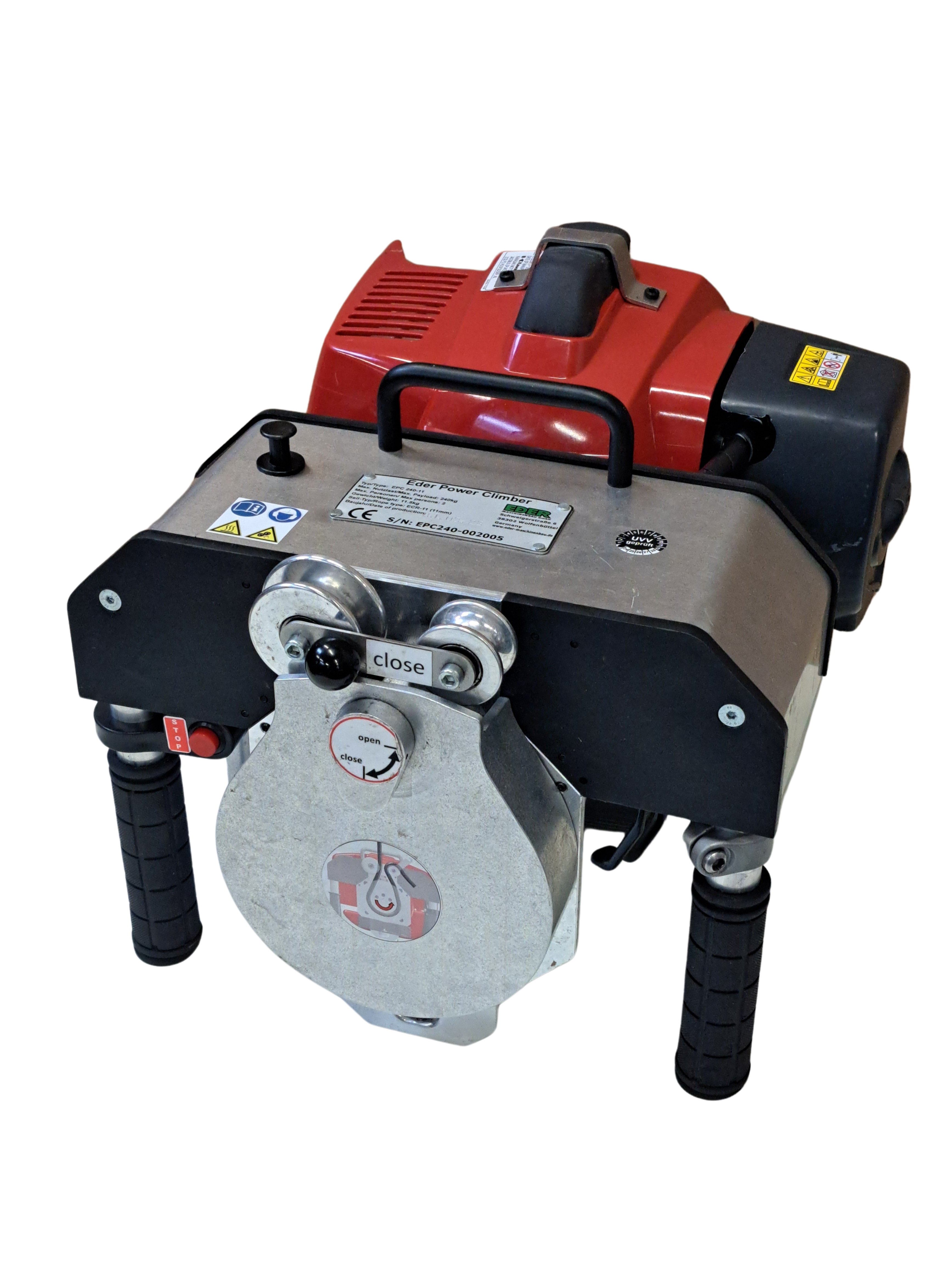 -EDER Power Climber EPC 240 está diseñado para la elevación, hasta 240kg, de una sola persona con equipo y en cuyo caso material, así como para el transporte de una segunda persona, por ejemplo durante las operaciones de rescate, en una cuerda vertical.